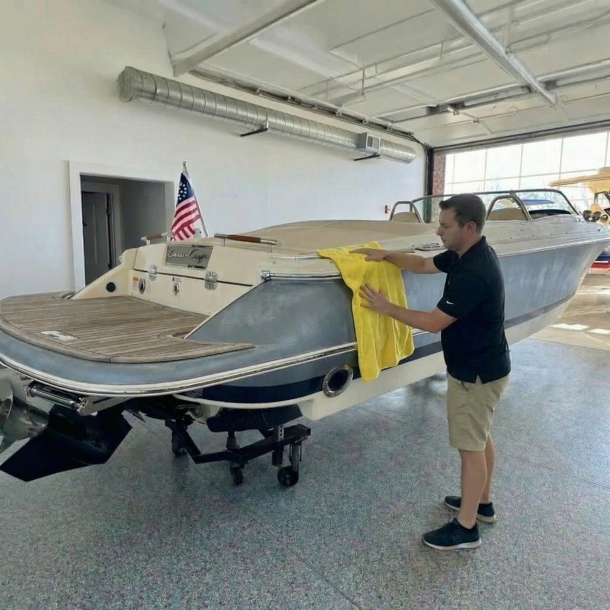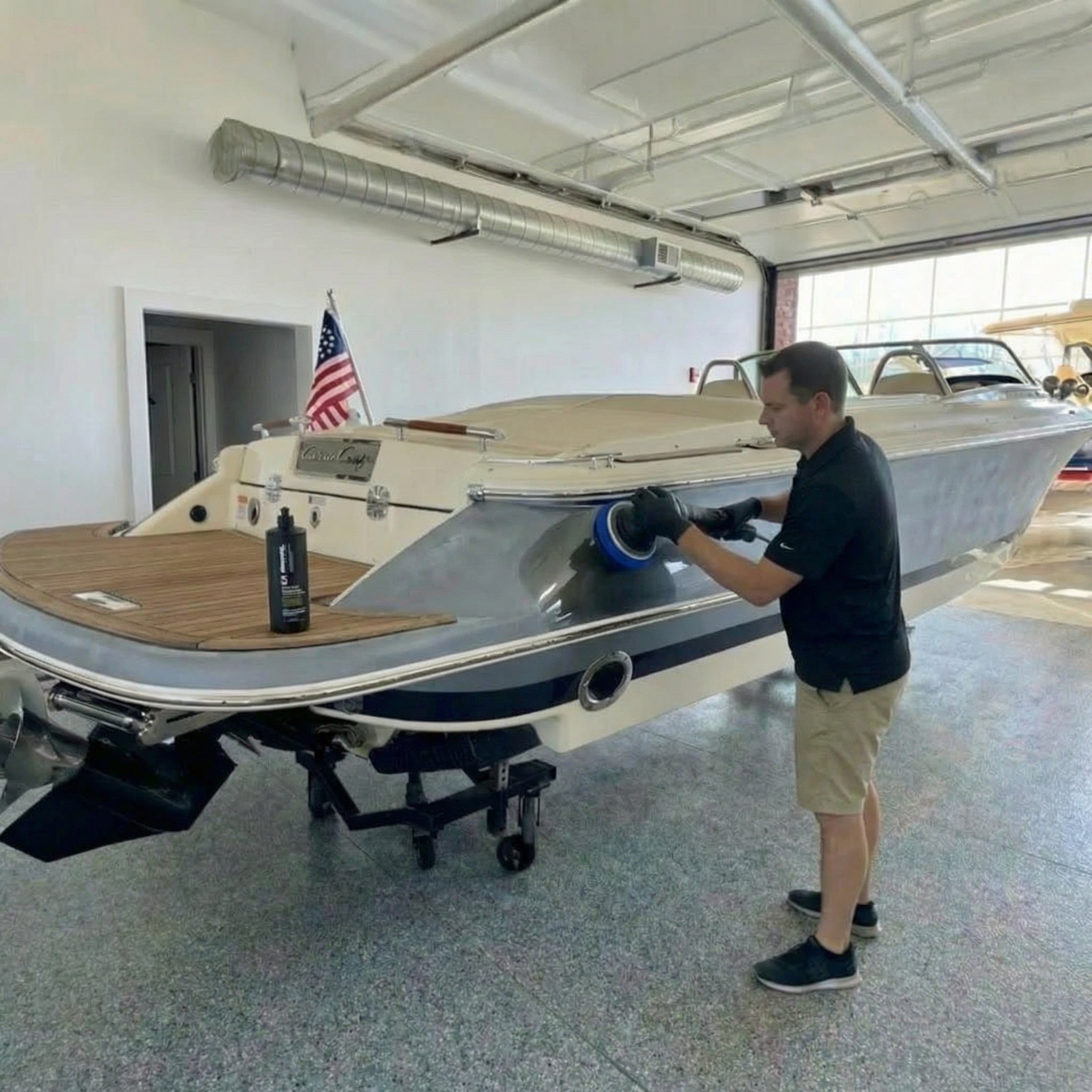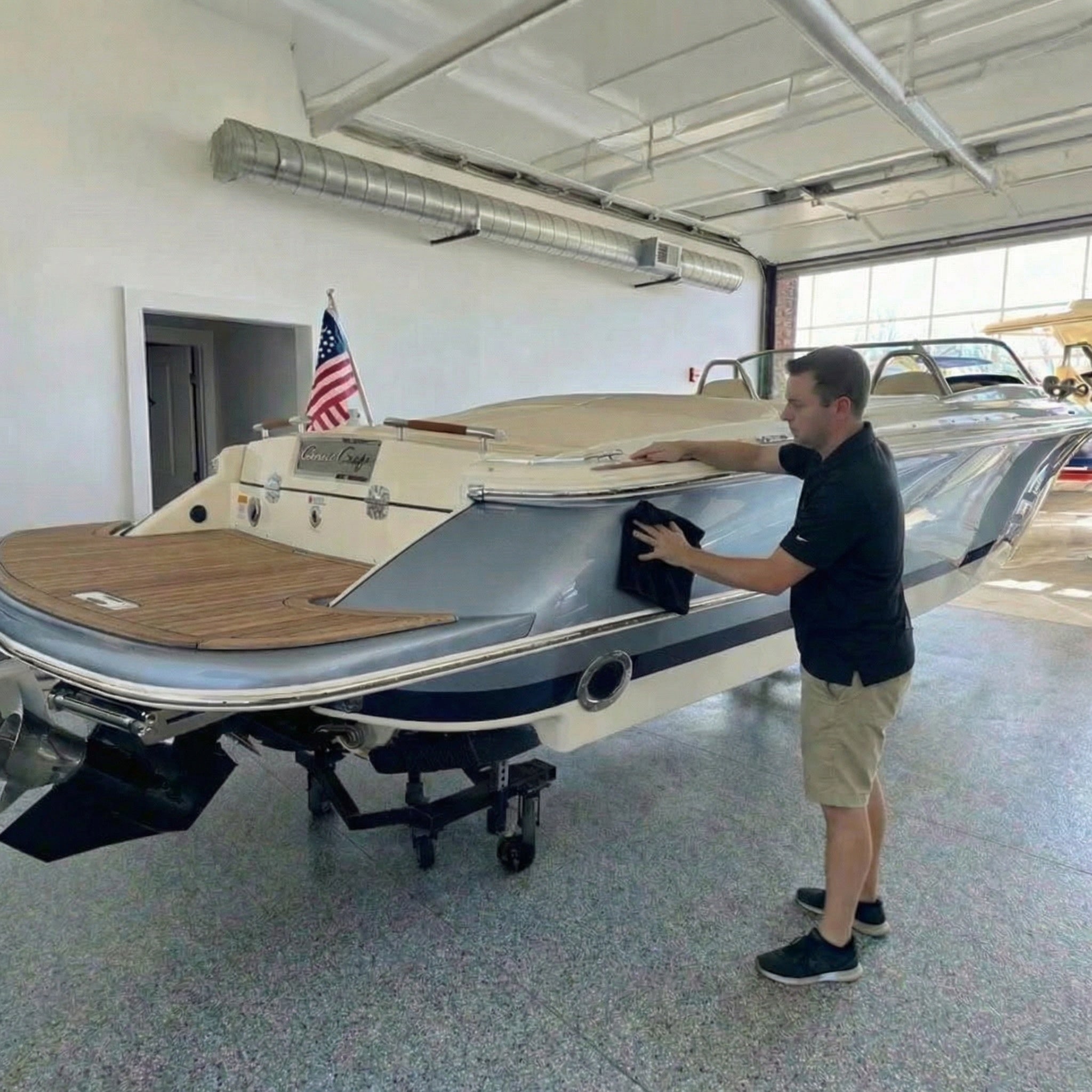 Make sure the boat is free from any residual soap, dirt and contaminants to avoid micro-scratching.