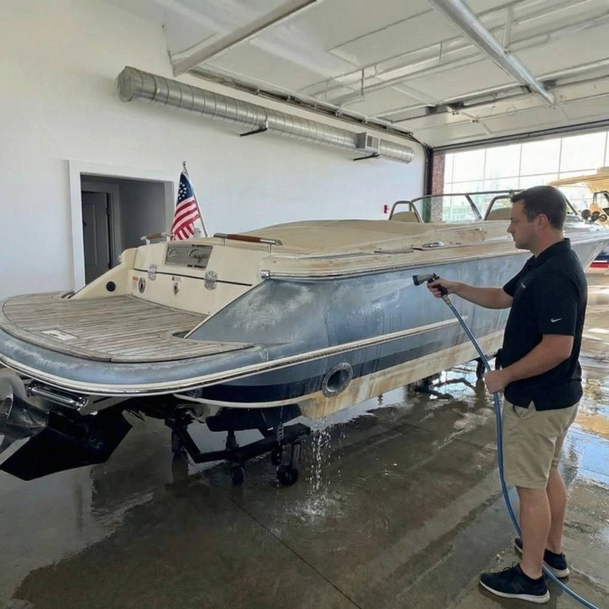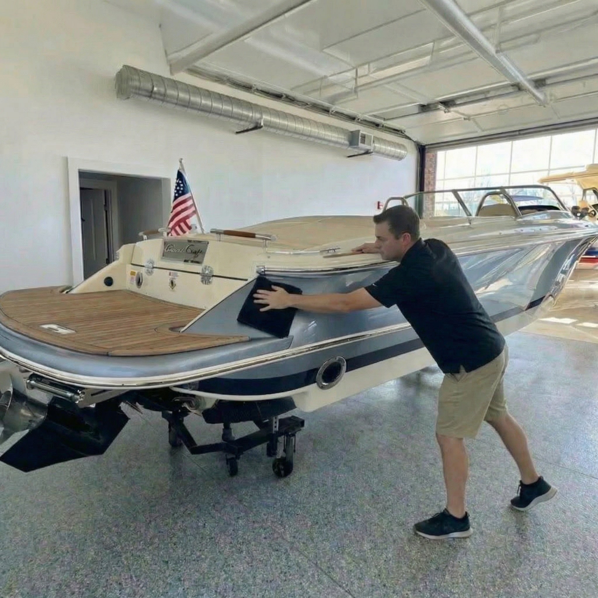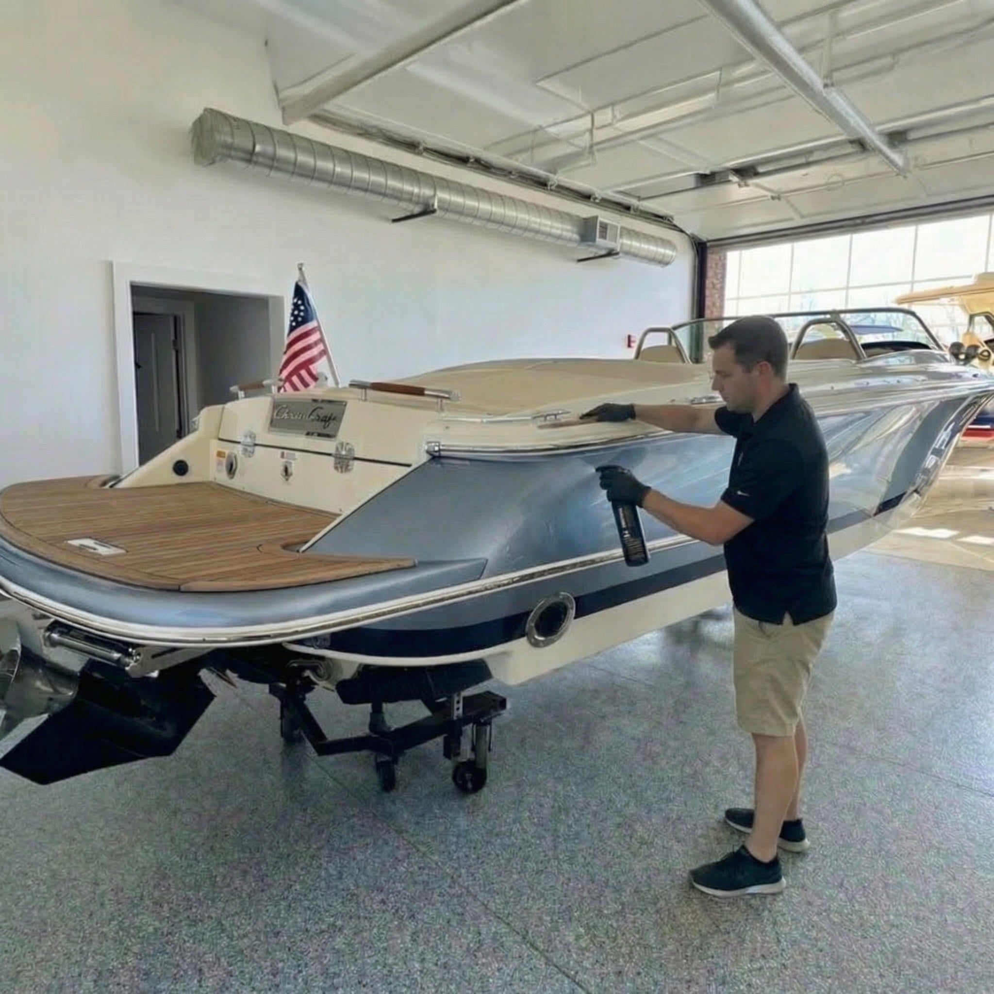 Make sure the boat is free from any residual soap, dirt and contaminants to avoid micro-scratching.